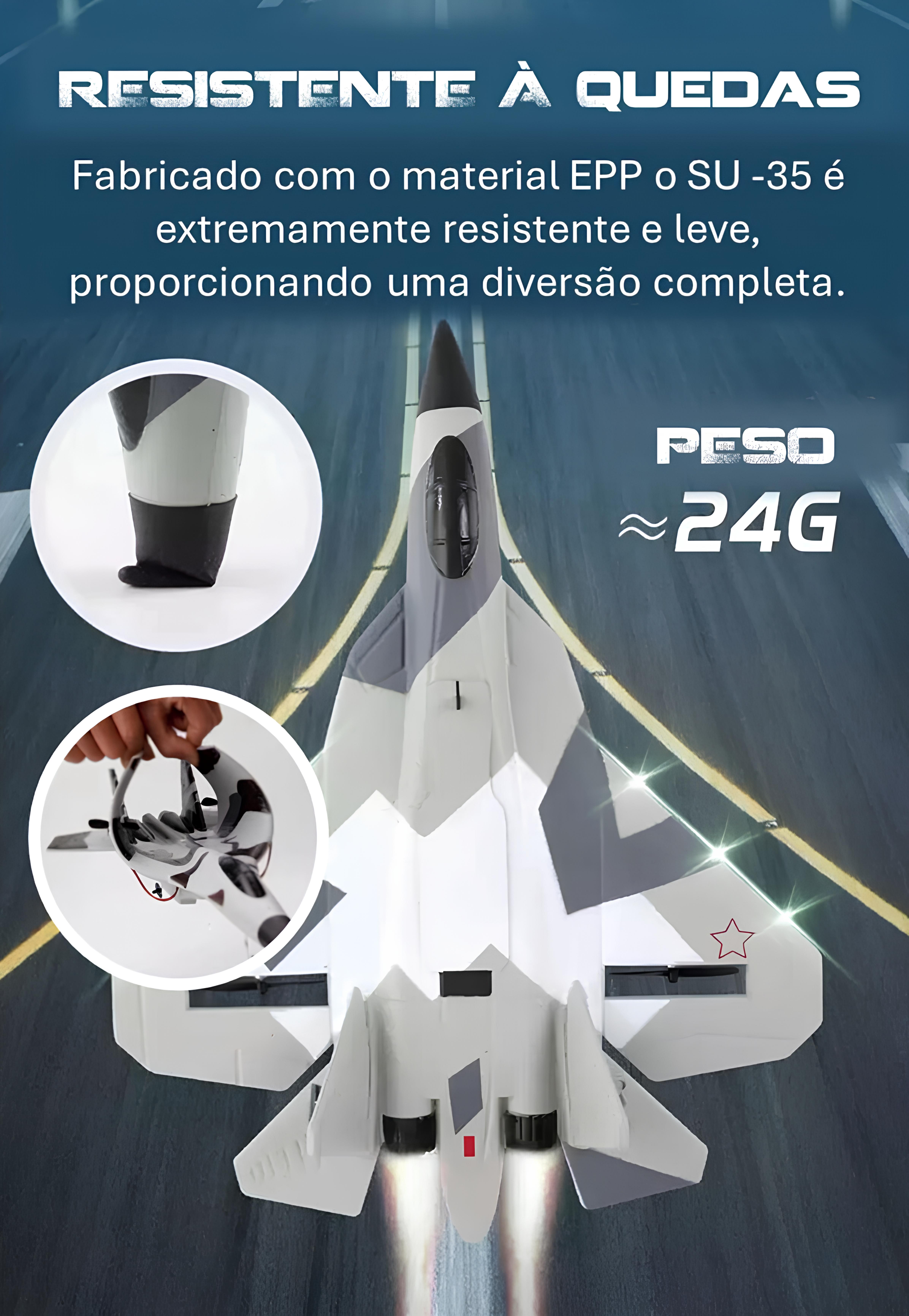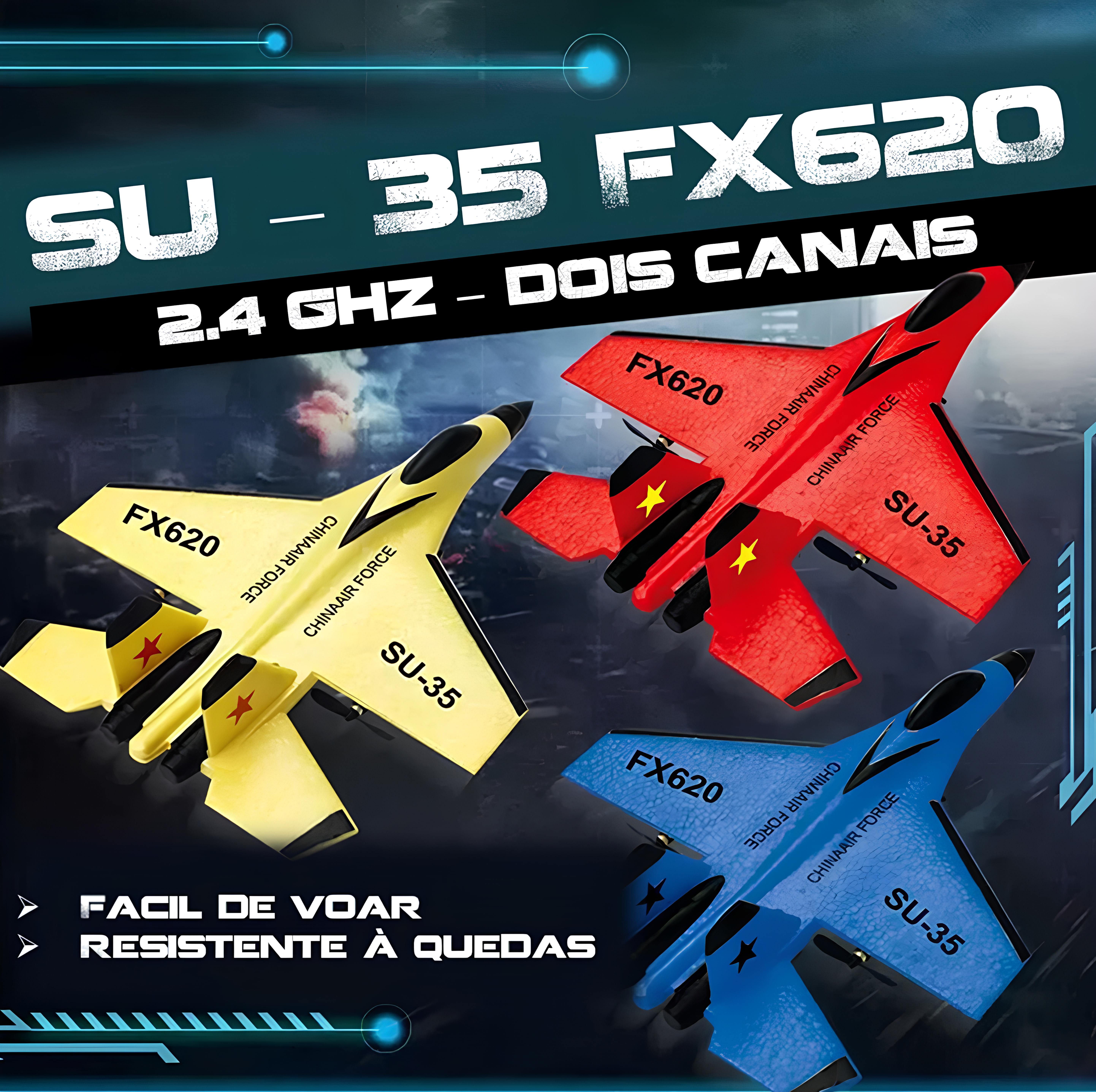 Com um tamanho pequeno e design leve, o SU 35 - FX620 está montado e completo para o voo. A aeronave utiliza um material especial de espuma EPP ultra-resistente, que é flexível e resistente a quedas. Inspirado no clássico caça SU-35, apresenta uma aparência compacta e aerodinâmica. Mesmo que você nunca tenha pilotado um modelo antes, pode voar facilmente. O motor potente permite que o modelo decole facilmente do solo. A aeronave 2.4GHz 2CH oferece quatro direções de voo: subir, descer, virar à esquerda e virar à direita. Este é o FX620, uma aeronave de controle remoto feita para você se divertir em qualquer lugar.